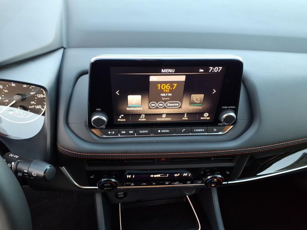 - Radio: AM/FM NissanConnect -inc: 6 speakers plus 2 tweeters, Apple CarPlay, Android Auto, 8" color touch screen display, Bluetooth®, 2 front USB type-C, Wi-Fi hotspot and NissanConnect Services powered by SiriusXM