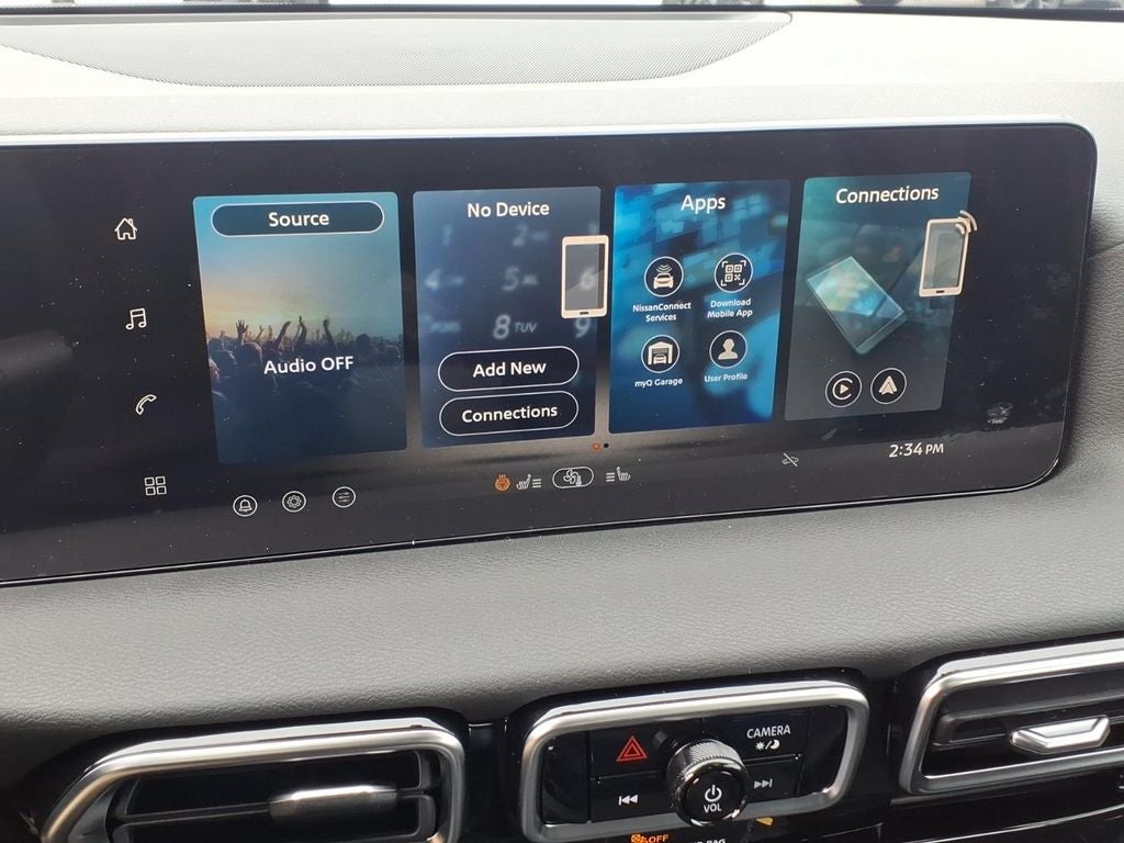 • Radio: AM/FM w/RDS/MP3 -inc: 6 speakers, 12.3" NissanConnect multimedia center display, Bluetooth® hands-free phone system, streaming audio via Bluetooth®, hands-free text messaging assistant, Siri Eyes Free, Google Assistant voice recognition, wireless Apple CarPlay and Android Auto, NissanConnect services, Wi-Fi hotspot, Over-The-Air (OTA) updating for headunit firmware via Wi-Fi WPA2 connection and (2) front USB connection port (type C)