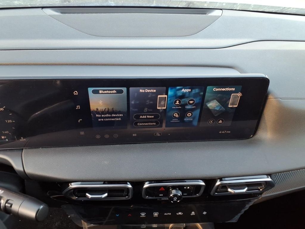 - Radio: AM/FM w/RDS/MP3 -inc: 4 speakers, 12.3" NissanConnect multimedia center display, Bluetooth® hands-free phone system, streaming audio via Bluetooth®, hands-free text messaging assistant, Siri Eyes Free, Google Assistant voice recognition, wireless Apple CarPlay and Android Auto and (2) front USB connection port (type C)