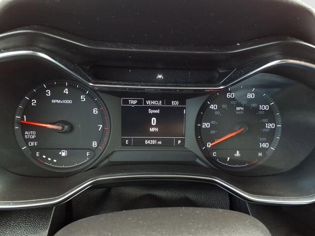 1 Type-A & 1 Type-C USB Charging-Only Ports, 120-Volt Power Outlet, 2-Way Power Driver Lumbar Seat Adjuster, 4-Way Manual Front Passenger Seat Adjuster, 4-Wheel Disc Brakes, 5.45 Axle Ratio, 6 Speakers, 6-Speaker Audio System Feature, 8-Way Power Driver Seat Adjuster, 8 Diagonal Color Touchscreen Display, ABS brakes, Air Conditioning, Alloy wheels, AM/FM radio, Apple CarPlay/Android Auto, Auto High-beam Headlights, Brake assist, Bumpers: body-color, Cabin Humidity Sensor, Cloth Seat Trim, Compass, Convenience Package, Delay-off headlights, Driver & Front Passenger Illuminated Vanity Mirrors, Driver Confidence Package, Driver door bin, Driver vanity mirror, Dual front impact airbags, Dual front side impact airbags, Electronic Stability Control, Emergency communication system: OnStar and Chevrolet connected services capable, Exterior Parking Camera Rear, Flat-Folding Front Passenger Seatback, Front anti-roll bar, Front Bucket Seats, Front Center Armrest, Front fog lights, Front License Plate Bracket, Front reading lights, Front wheel independent suspension, Fully automatic headlights, Heated door mirrors, Heated Driver & Front Passenger Seats, Heated front seats, Illuminated entry, Inside Rear-View Auto-Dimming Mirror, Knee airbag, Lane Change Alert w/Side Blind Zone Alert, Low tire pressure warning, Occupant sensing airbag, Overhead airbag, Overhead console, Panic alarm, Passenger door bin, Passenger vanity mirror, Performance Package, Power door mirrors, Power driver seat, Power steering, Power windows, Preferred Equipment Group 1LT, Radio data system, Radio: Chevrolet Infotainment 3 System, Rear Cross Traffic Alert, Rear Park Assist, Rear side impact airbag, Rear window defroster, Rear window wiper, Remote keyless entry, Ride & Handling Suspension, Roof rack: rails only, Security system, Single-Zone Auto Climate Control Air Conditioning, SiriusXM Radio, Speed control, Split folding rear seat, Spoiler, Steering wheel mounted audio controls, Tachometer, Telescoping steering wheel, Tilt steering wheel, Traction control, Trip computer, Variably intermittent wipers, Wheels: 17 High Gloss Black Machined Aluminum, Wireless Apple CarPlay/Android Auto.